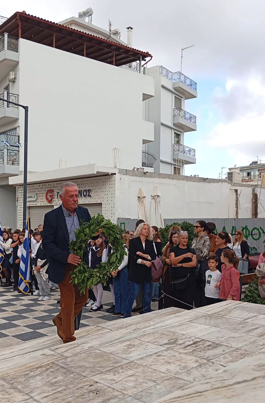 Ακολούθησε η κατάθεση στεφάνων από εκπροσώπους των δύο σχολείων, ενώ στη συνέχεια κατατέθηκαν στεφάνια από το σύνολο των εκπαιδευτικών φορέων της πόλης.
