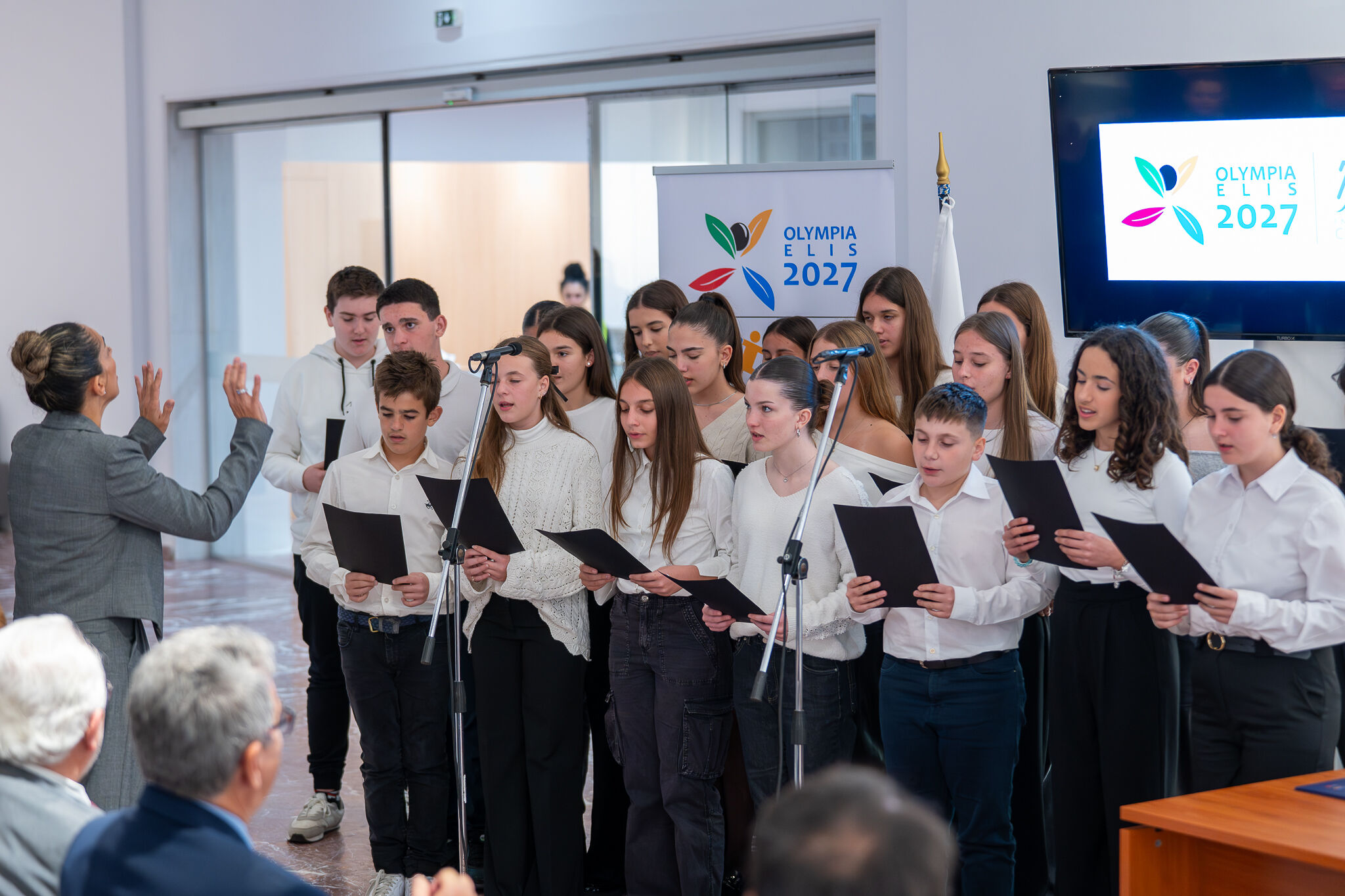 Η εκδήλωση πλαισιώθηκε από τη χορωδία του Γυμνασίου Αρχαίας Ολυμπίας, η οποία απέδωσε τον Ολυμπιακό Ύμνο και έργα του Μάνου Χατζιδάκι, προσδίδοντας καλλιτεχνικό και τελετουργικό κύρος στην ημέρα.