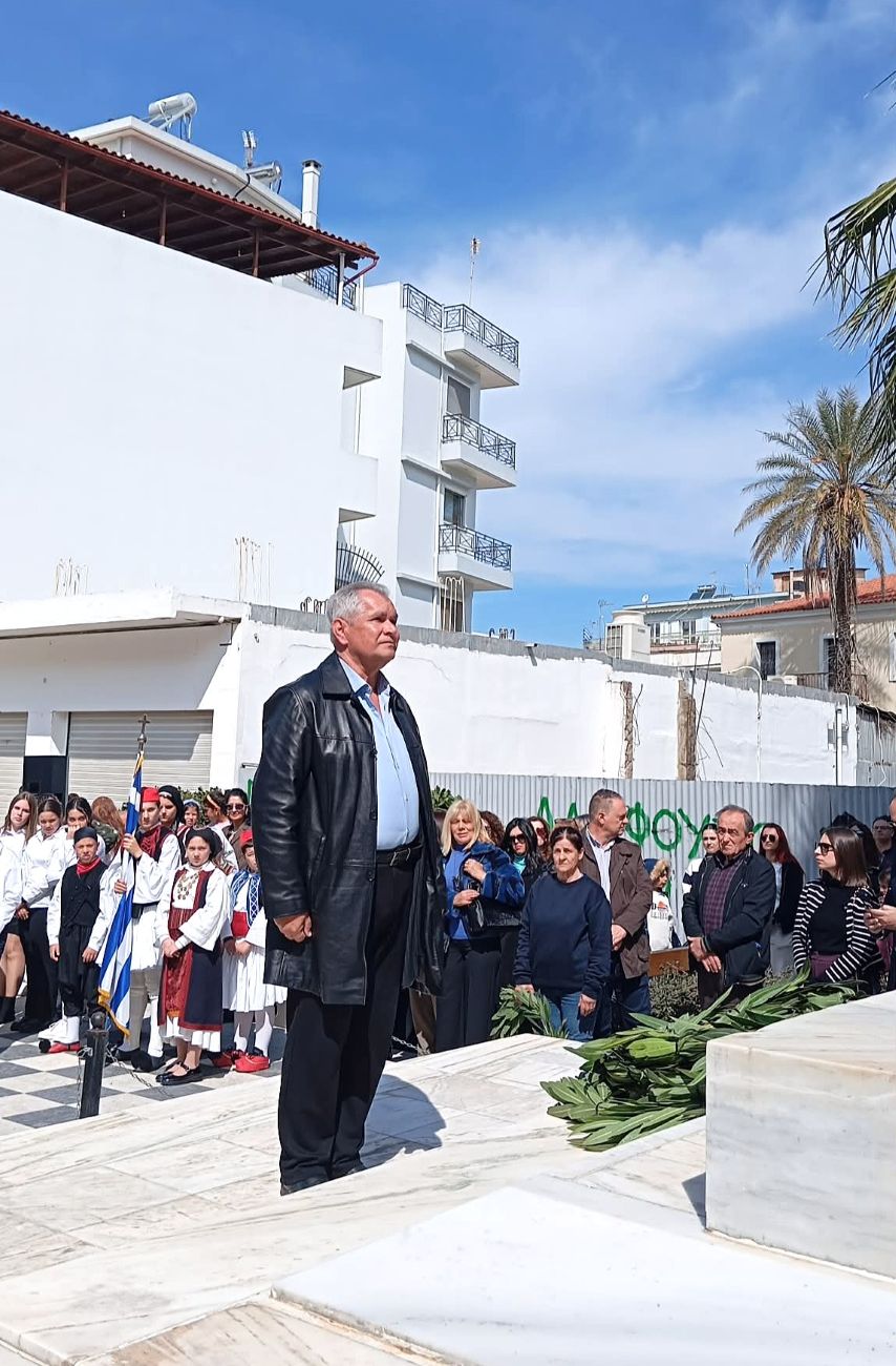 Τη δημοτική αρχή εκπροσώπησαν στην κατάθεση στεφάνων ο Αντιδήμαρχος Παιδείας, Προσχολικής Αγωγής & Δια Βίου Μάθησης, Αθλητισμού, Τουρισμού και Νέας Γενιάς κ. Γεώργιος Κράλλης, καθώς και ο άμισθος σύμβουλος του Δημάρχου σε θέματα Παιδείας και Αντιπρόεδρος της Δημοτικής Επιτροπής Παιδείας κ. Ιωάννης Ντακούλιας.