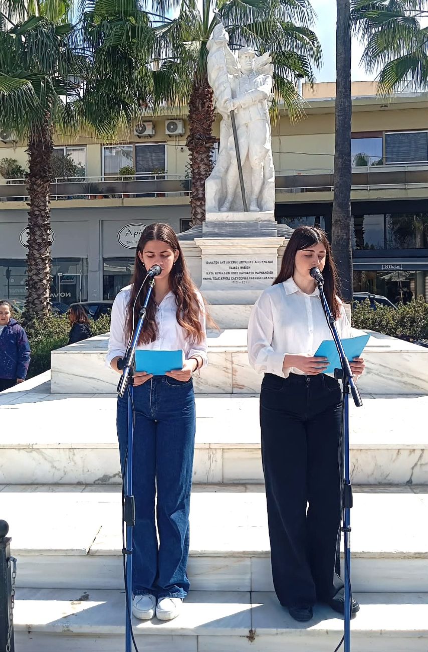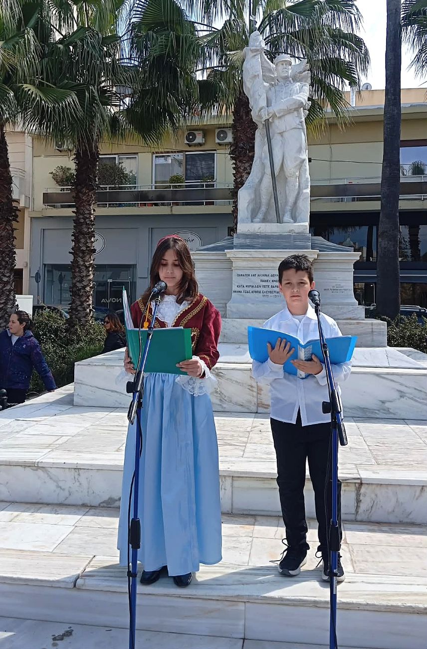 Οι μαθητές και οι μαθήτριες του 6ου Δημοτικού Σχολείου και του 1ου Γυμνασίου, με περίσσιο σεβασμό, απήγγειλαν ποιήματα και κείμενα που εξυμνούν τους αγώνες για την ελευθερία, στέλνοντας ένα ηχηρό μήνυμα ότι οι αξίες των προγόνων μας παραμένουν ζωντανές στις καρδιές της νεολαίας.