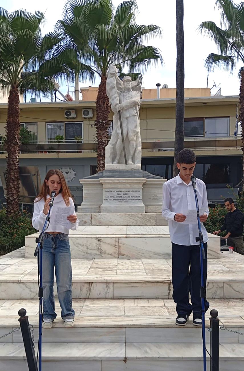 Ακολούθησε η κατάθεση στεφάνων από εκπροσώπους των δύο σχολείων, ενώ στη συνέχεια κατατέθηκαν στεφάνια από το σύνολο των εκπαιδευτικών φορέων της πόλης.