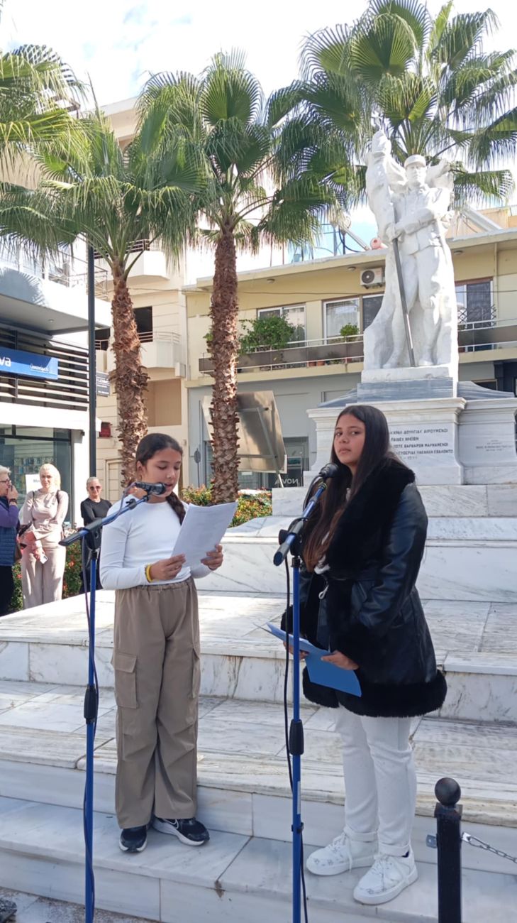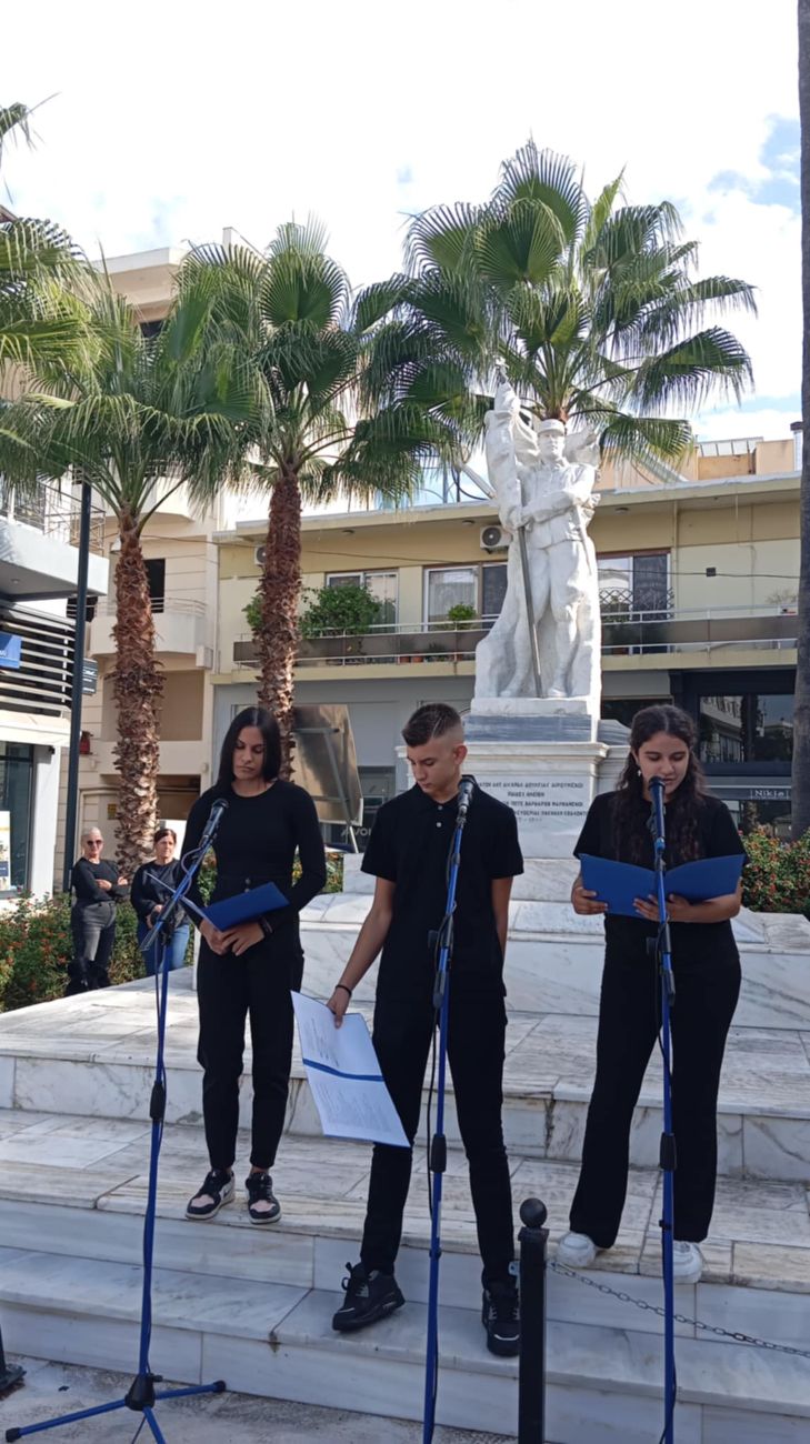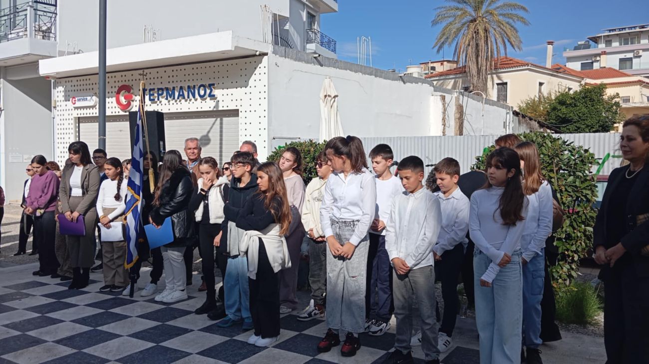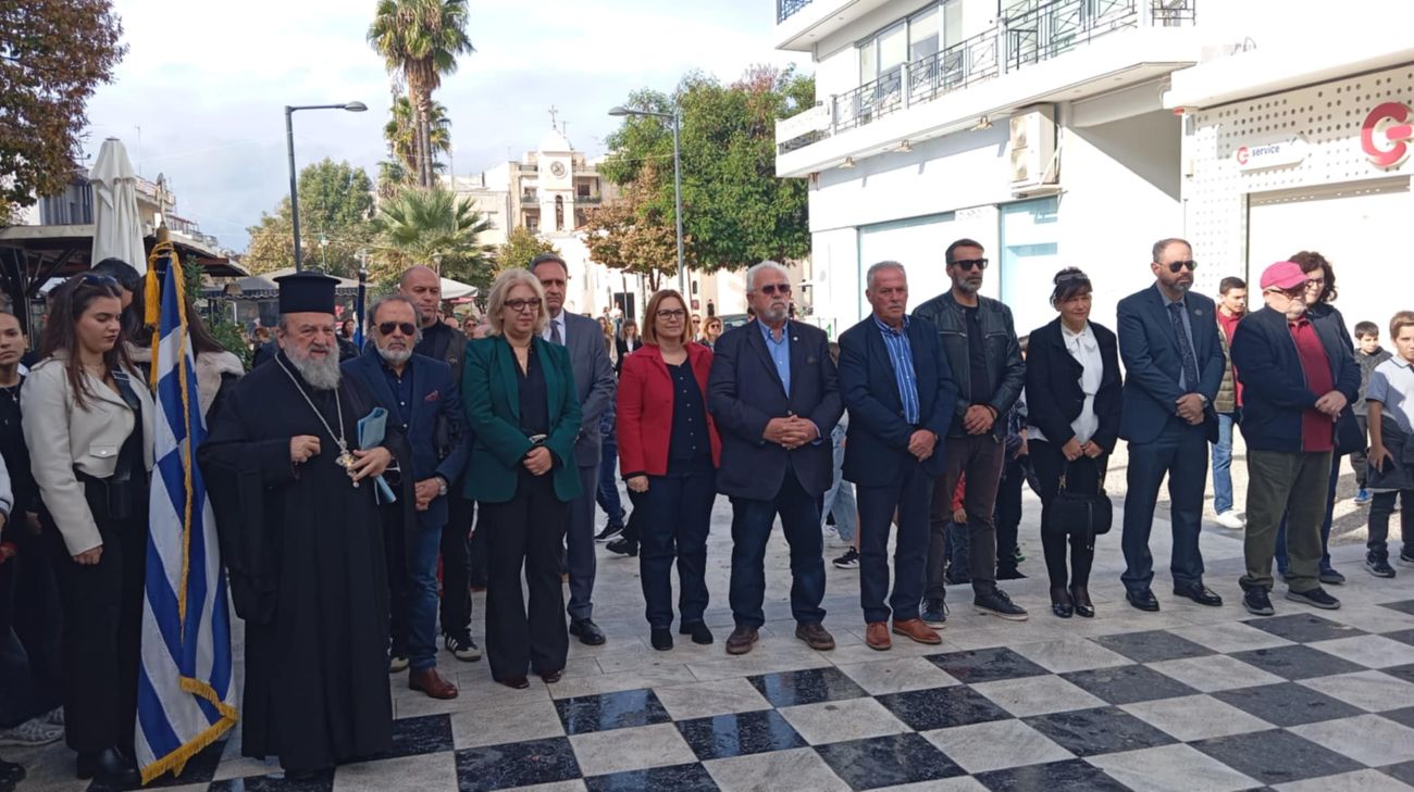 Από νωρίς το πρωί εκδηλώσεις πραγματοποιήθηκαν στο σύνολο των σχολείων του Δήμου, ενώ στη συνέχεια μαθητές κι εκπαιδευτικοί μετέβησαν στο μνημείο Ηρώων, όπου τελέστηκε επιμνημόσυνη δέηση από τον εφημέριο του Ιερού Ναού του Αγίου Αθανασίου π. Αλέξιου Αναγνωστόπουλου.