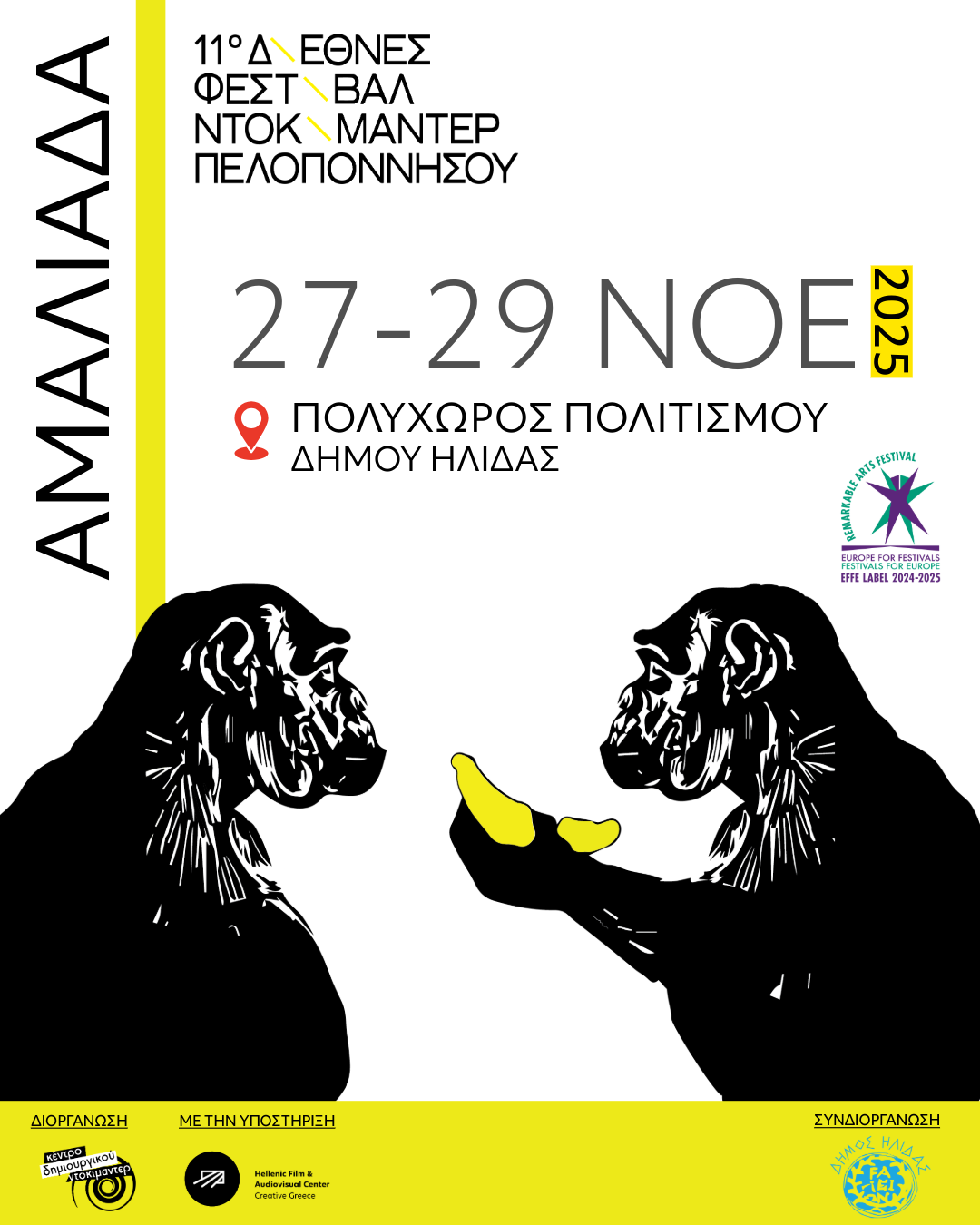 Στο πλαίσιο του φετινού προγράμματος, το κοινό της Αμαλιάδας θα έχει την ευκαιρία να απολαύσει μια προσεκτικά επιλεγμένη σειρά ντοκιμαντέρ από την Ελλάδα και το εξωτερικό, τα οποία θα προβληθούν την Πέμπτη 27 και την Παρασκευή 28 Νοεμβρίου 2025 από τις 17:00, καθώς και το Σάββατο 29 Νοεμβρίου από τις 12:00, στο αμφιθέατρο του Πολυχώρου Πολιτισμού Δήμου Ήλιδας.