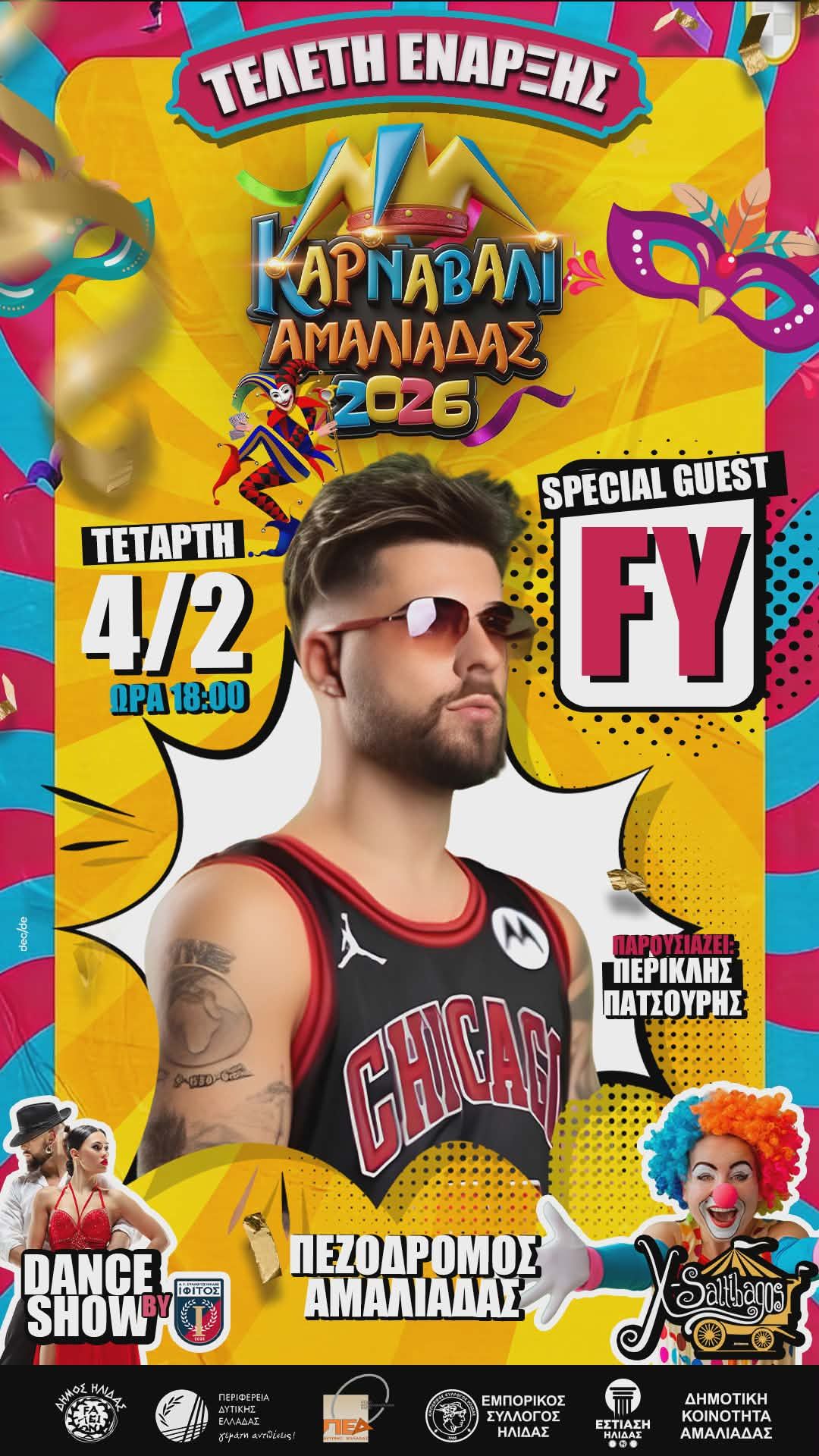 Φαντασμαγορική έναρξη για το «Καρναβάλι Αμαλιάδας 2026» με μια μεγάλη συναυλία του FY