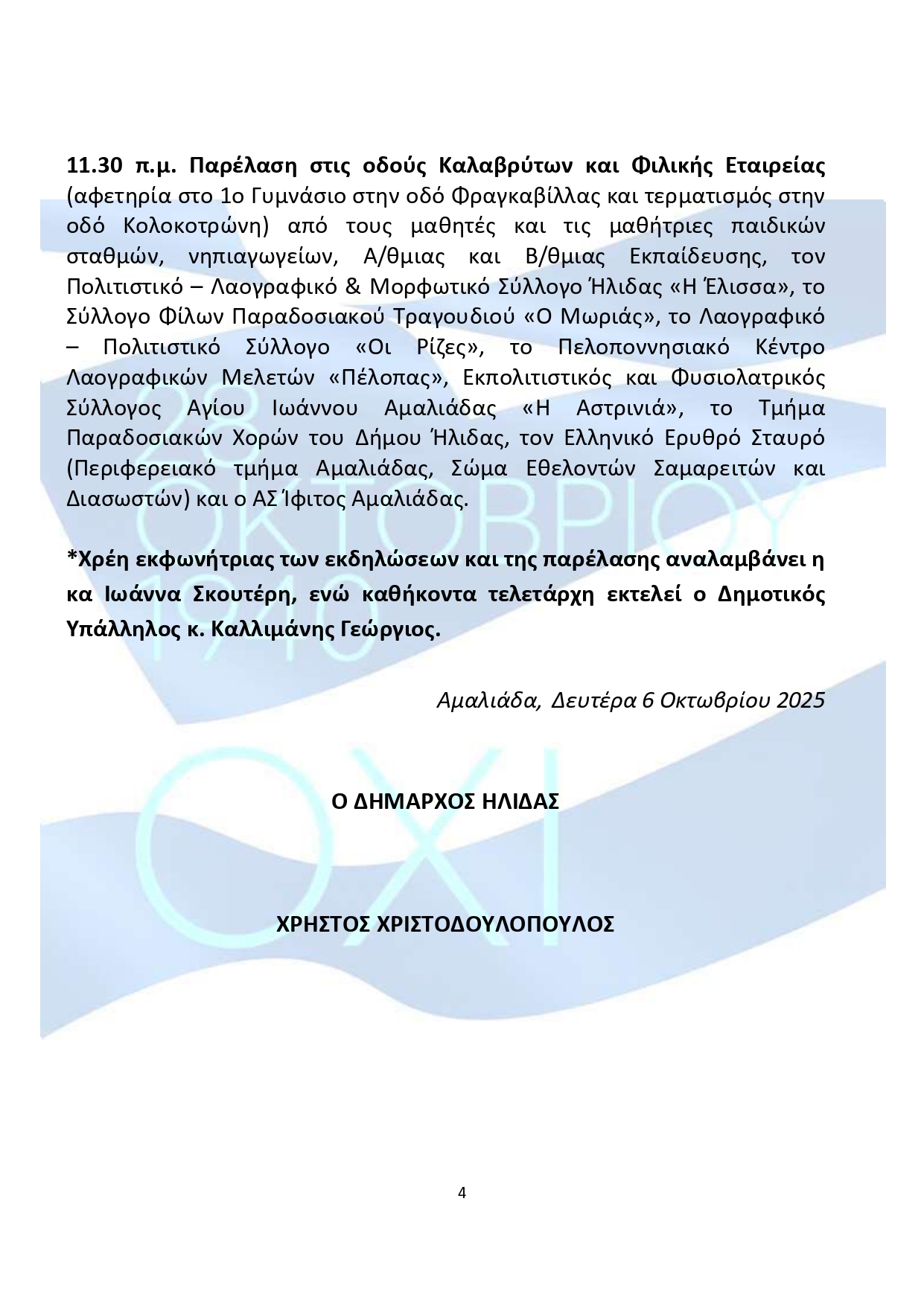 Ο Δήμος Ήλιδας τιμά το Έπος του ’40, με την κεντρική παρέλαση και τις επετειακές εκδηλώσεις στην πόλη της Αμαλιάδας – ΟΛΟΚΛΗΡΟ ΤΟ ΠΡΟΓΡΑΜΜΑ