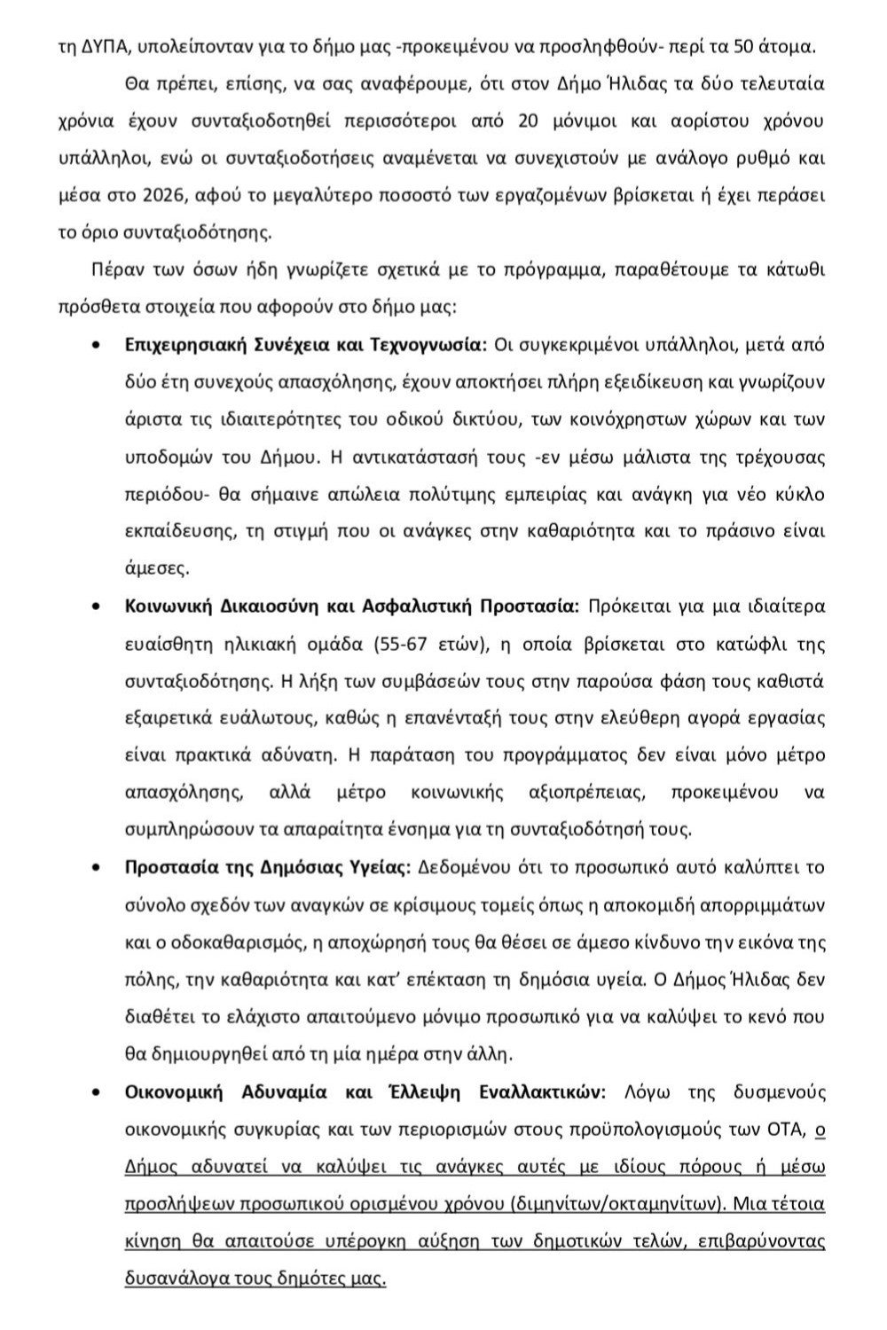 Έλλειψη Εναλλακτικών, αφού με το νέο πρόγραμμα του 2025 προσλήφθηκαν μόλις 14 άτομα, ενώ οι συνταξιοδοτήσεις μόνιμου προσωπικού στον Δήμο Ήλιδας ξεπέρασαν τις 20 την τελευταία διετία.