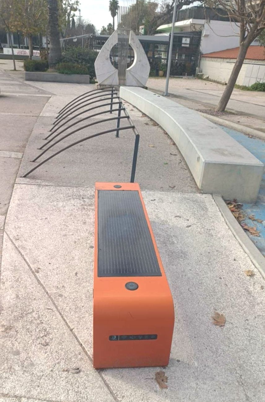 Τα «έξυπνα» παγκάκια, που τοποθετήθηκαν στο πλαίσιο του έργου OPEN MALL, αποτελούν πρότυπο οικολογικής καινοτομίας. Είναι 100% ενεργειακά αυτόνομα (ηλιακή ενέργεια), προσφέρουν δωρεάν Wi-Fi και διαθέτουν σταθμούς φόρτισης κινητών συσκευών.
