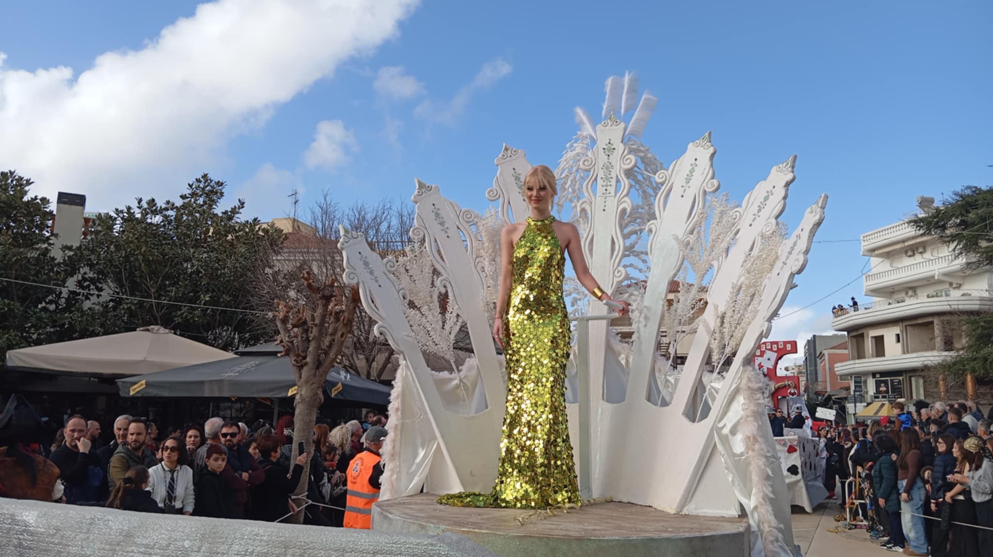 Την έναρξη της παρέλασης σήμανε πανηγυρικά ο βασιλιάς Καρνάβαλος, ενώ ακολούθησε η βασίλισσα του καρναβαλιού, η 18χρονη Άρτεμις Σακέτα, η οποία με τη λαμπερή παρουσία και τη φαντασμαγορική της στολή συγκέντρωσε τα βλέμματα και καταχειροκροτήθηκε.